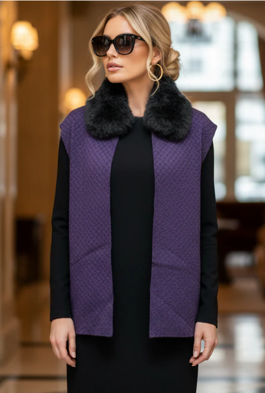 The fur-trimmed neckline adds a touch of fullness and warmth you’ll love. Wear it as a scarf or wrap for effortless versatility.